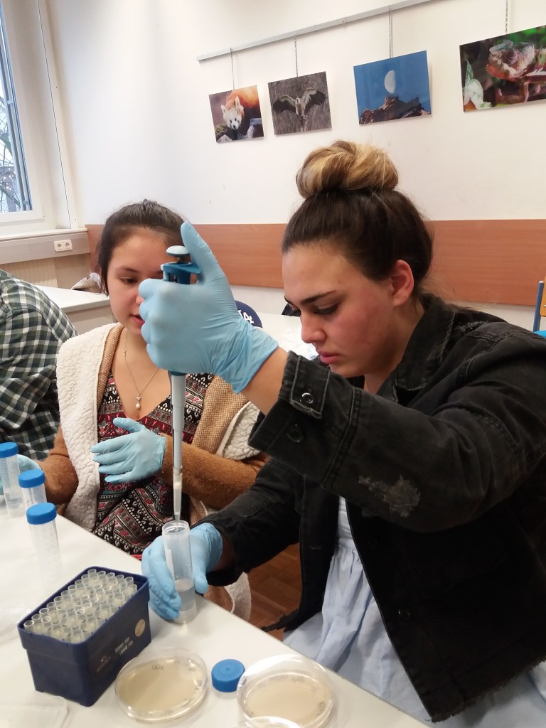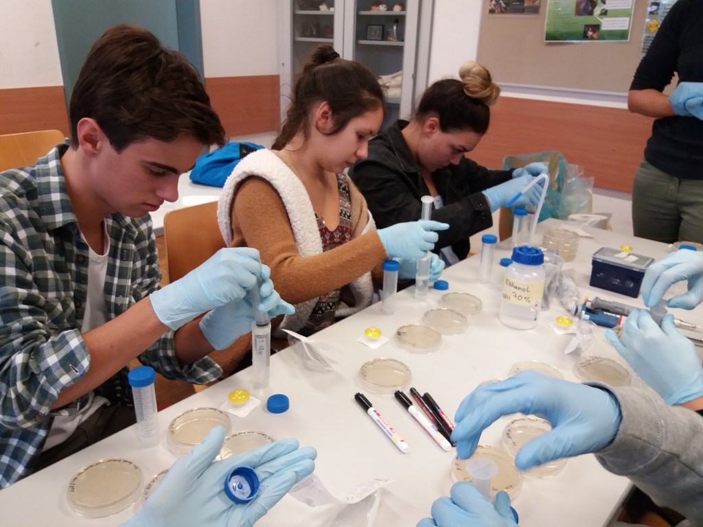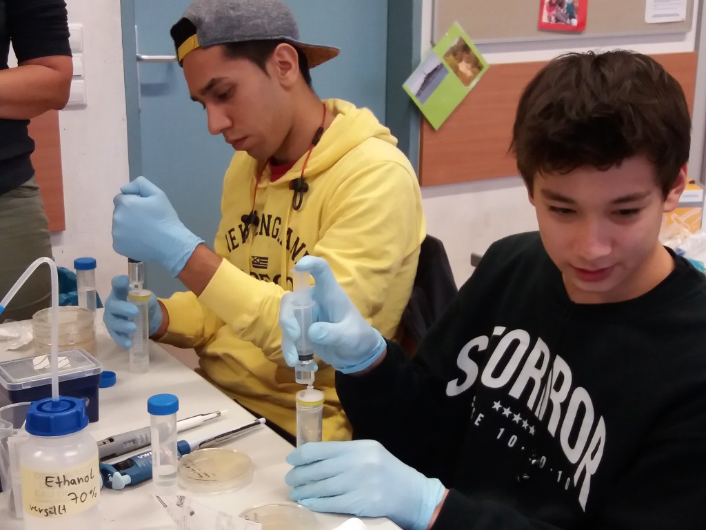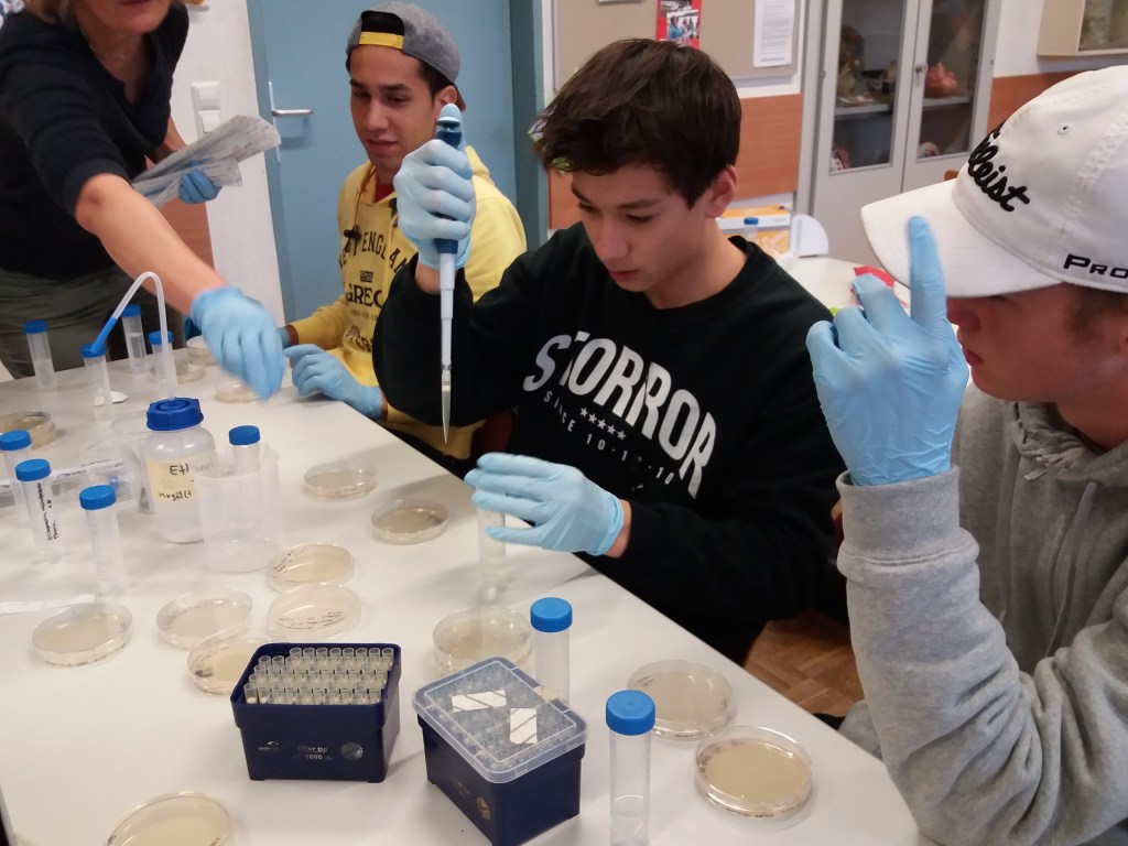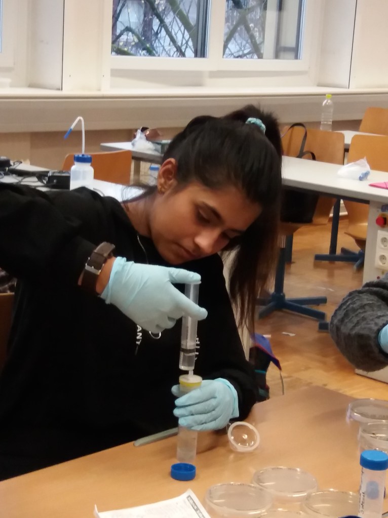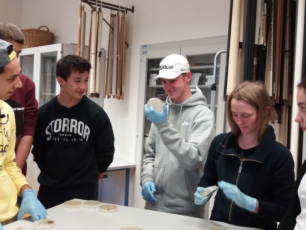 Dafür haben alle von uns Wasserproben aus den unterschiedlichsten Gewässern in Salzburg mitgebracht. Die Proben haben wir dann gefiltert und auf Agarplatten ausgestrichen. Uns wurde erklärt, dass das Institut jetzt 2 Jahre mit diesen Proben arbeiten wird, um zu erforschen, welche Bakterienkulturen wachsen und ob vielleicht noch nicht beschriebene Arten entdeckt werden können.