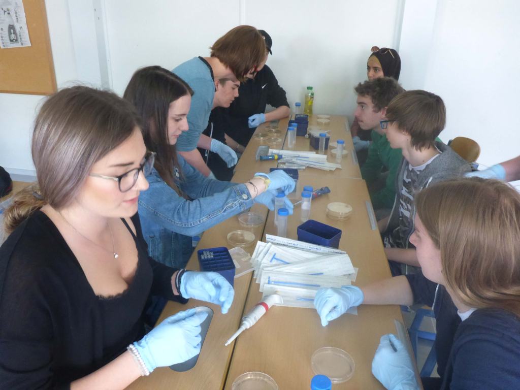 Am 7. Mai war das Projektteam im BORG Oberndorf zu Gast. Die Klasse 7oN des naturwissenschaftlichen Schwerpunktes des Gymnasiums wurde mit dem Projekt und den Arbeitstechniken zum Bearbeiten der Wasserproben vertraut gemacht. Die Schüler/innen hatten Flüssigkeitsproben mitgebracht, in denen sie Bakterien vermuten und solche mit wenigen oder gar keinen Bakterien. Die Proben wurden auf Agarplatten ausgestrichen und das nächste Mal werden wir sehen, was darauf angewachsen ist. Jetzt wünschen wir der Klasse erst mal viel Spaß bei der Meeresbiologischen Woche in Pula 🙂