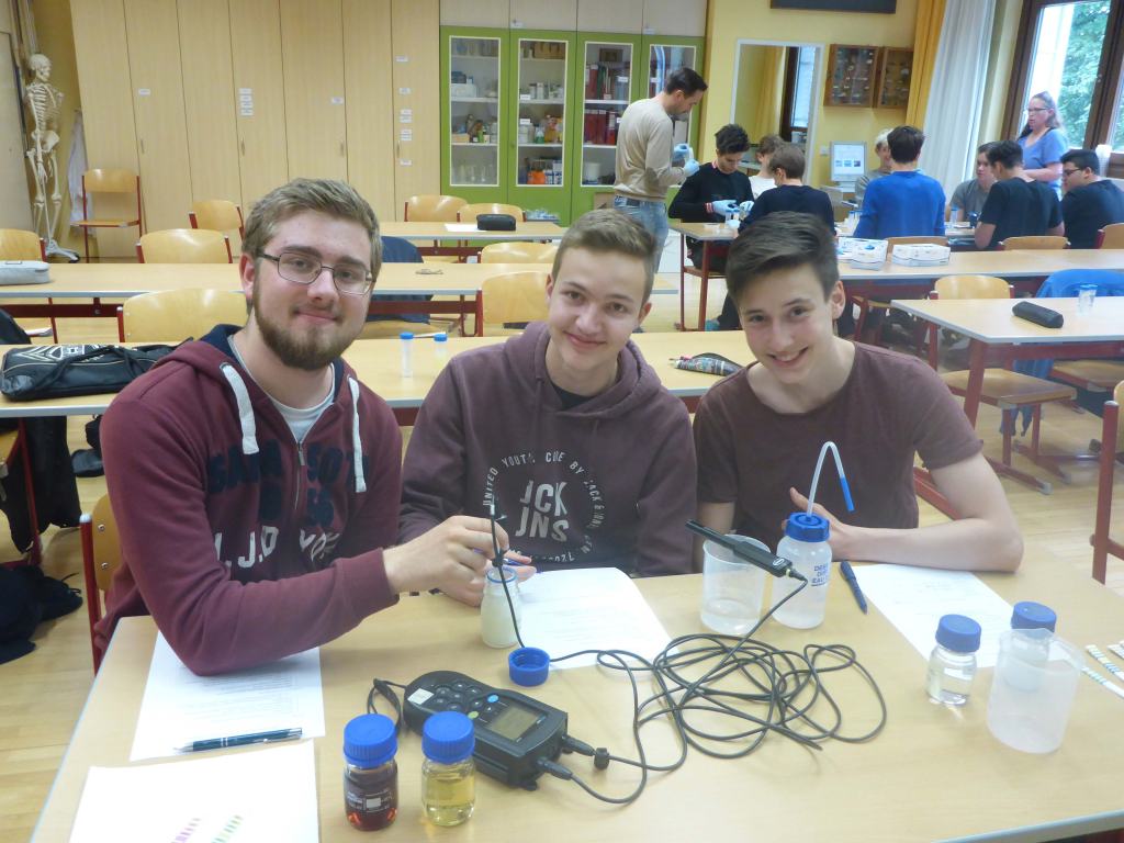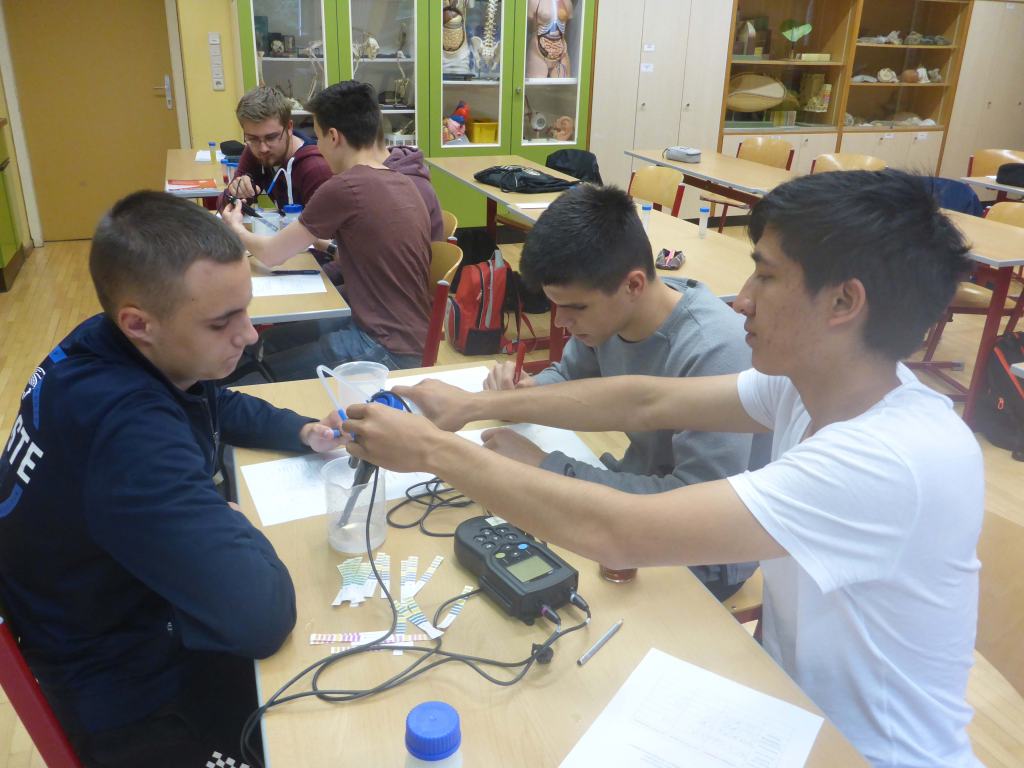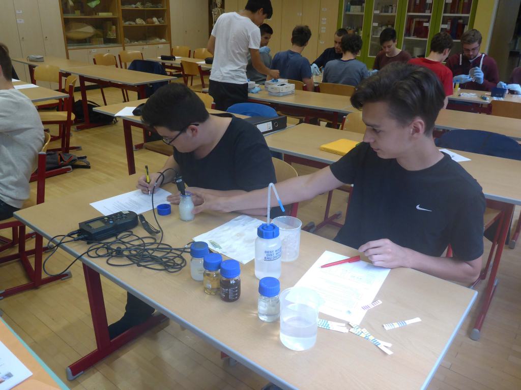 Außerdem wurde mit Messgeräten der pH-Wert und die Leitfähigkeit von verschiedenen Flüssigkeiten und Gewässerproben bestimmt. Der Unterschied zwischen dem Mondsee -hoher pH-Wert und hohe Leitfähigkeit- und einem Moorgewässer -niederer pH-Wert und niedere Leitfähigkeit- war deutlich zu sehen.