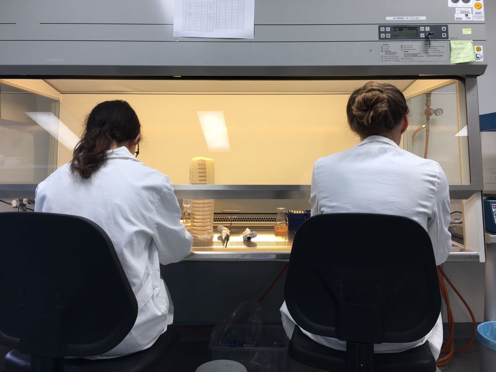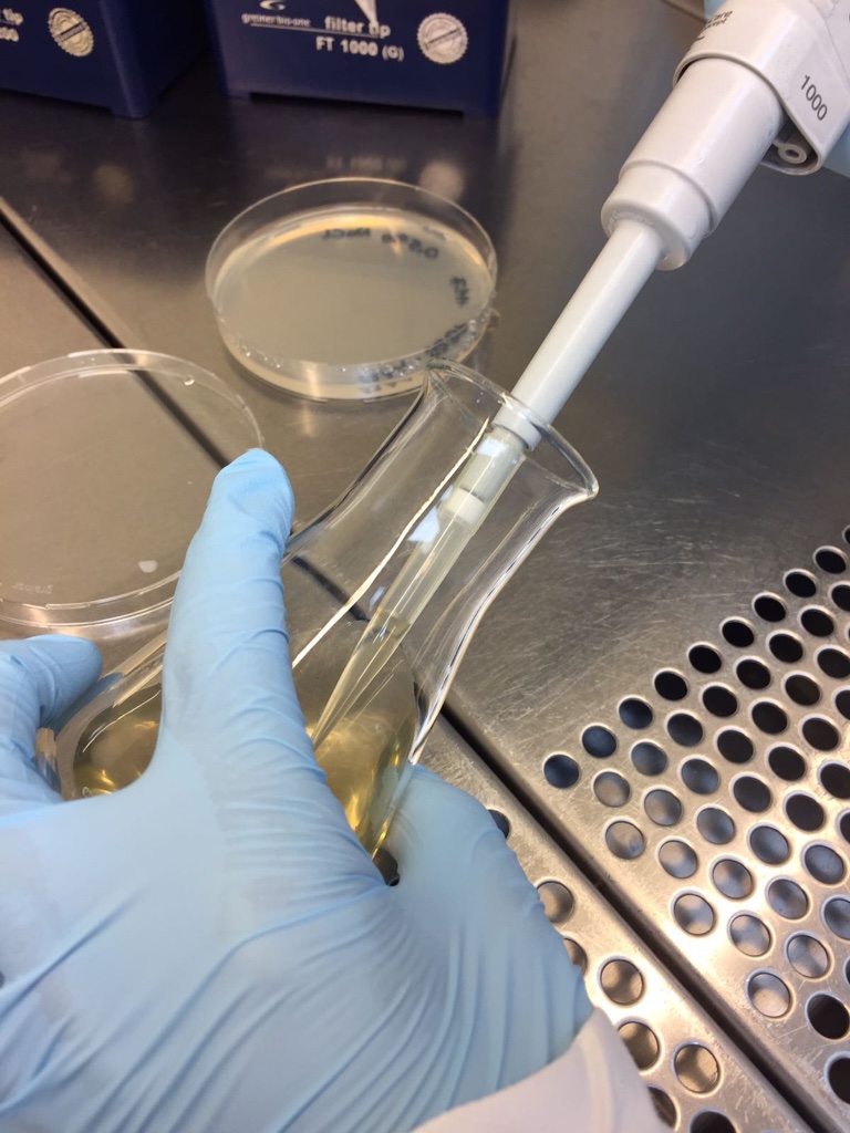 Es hat von Anfang an unglaublichen Spaß gemacht und obwohl zu Beginn alles noch ziemlich neu war, „lebte“ man sich nach sehr kurzer Zeit richtig ein. An unserem ersten Tag durften wir eine Agarlösung mischen, welche wir am folgenden Tag auch unter der Clean Bench gossen.