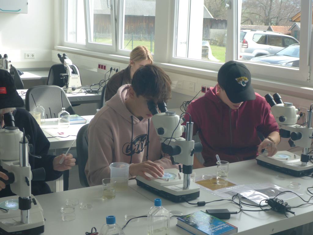 Am 2.4.2019 war die letzte Klasse bei uns in Mondsee zu Besuch, nämlich die 7. Klasse aus dem BORG Nonntal sowie zwei Lehrer. Zum Abschluss schien tatsächlich die Sonne und der Mondsee und der Schafberg zeigten sich von ihrer besten Seite. Wie in der Woche davor gab es vier Stationen, eine Hausführung, Mikroskopieren von Planktonorganismen, mikrobiologisches Arbeiten im Labor und Probenahme am See. Und dann gab es natürlich wieder eine Jause 🙂 .