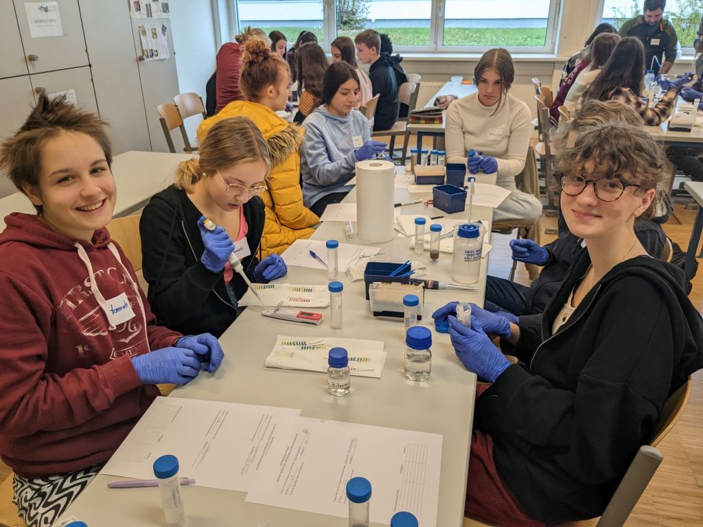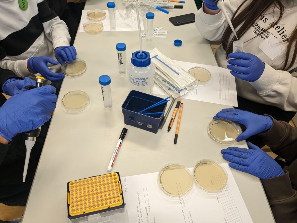 Am 9. November waren wir (Alexandra, Johanna, Ulli und Stefan) zu Besuch am BRG Schloss Wagrain. Da die dortige Klasse 5b recht gross ist, hatte uns Ulli, die auch im letzten Projekt bei den Workshops dabei war, begleitet. Nachdem wir Vöcklabruck etwas unfreiwillig mit dem Auto erkundet hatten, kamen wir gerade noch rechtzeitig in der Schule an. Der Workshop mit der sehr netten Klasse fand im Biologiesaal statt, da gab es einige lebende Tiere zu bestaunen. Zuerst gab es wieder eine theoretische Einführung und dann wurden die mitgebrachten Proben bearbeitet. Auf Agarplatten wurden Proben ausgestrichen, in denen Bakterien zu erwarten sind und solche, in denen sich eher weniger Bakterien befinden sollten. Dann wurde noch pH Wert und Leitfähigkeit gemessen. Die Schüelr/innen sollten nun genug praktische Erfahrungen gesammelt haben, damit mit den eigentlichen Wasserproben in zwei Wochen alles reibungslos funktioniert. Das Wetter ist ja noch sehr schön und so sollte Gelegenheit sein, ein geeignetes Gewässer auszusuchen. Wir sind schon sehr gespannt auf die Wasserproben und darauf, was auf den Agarplatten so alle gewachsen ist und freuen uns auf den nächsten Workshop.