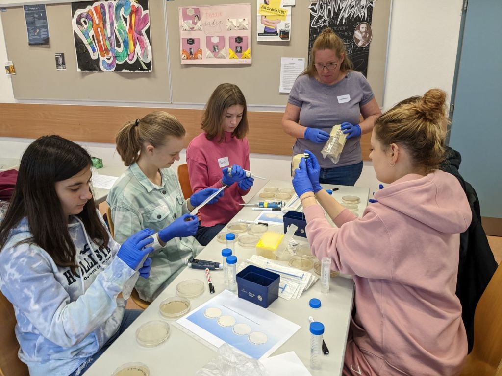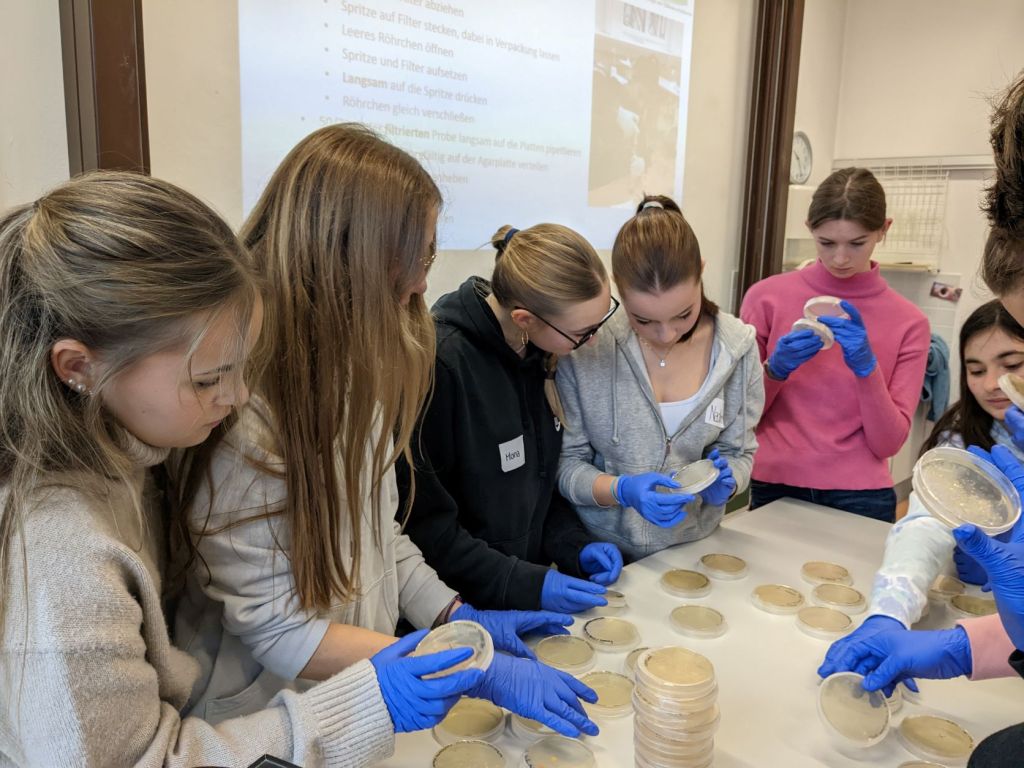 Am 16. November waren wir (Alexandra, Johanna und Stefan) wieder am BORG Nonntal bei der 6c zu Gast. Zuerst einmal gab es einen Vortrag über Bakterien und ihre Bedeutung für die Ökosysteme und für uns. Die Schüler/innen wussten schon eine ganze Menge zum Thema, das hat uns sehr gefreut. Wir konnten hoffentlich zeigen, welche enorme Vielfalt in der Welt der Bakterien existiert und dass die uns umgebenden Pflanzen und Tiere nur einen sehr kleinen Teil der Lebeswesen auf der Erde darstellen.