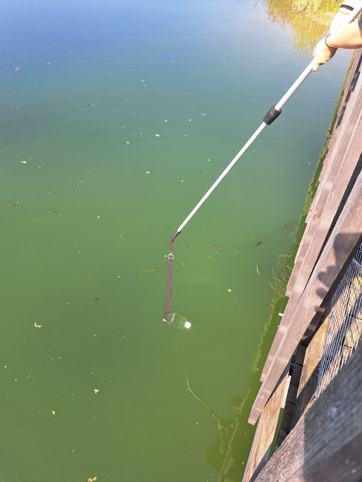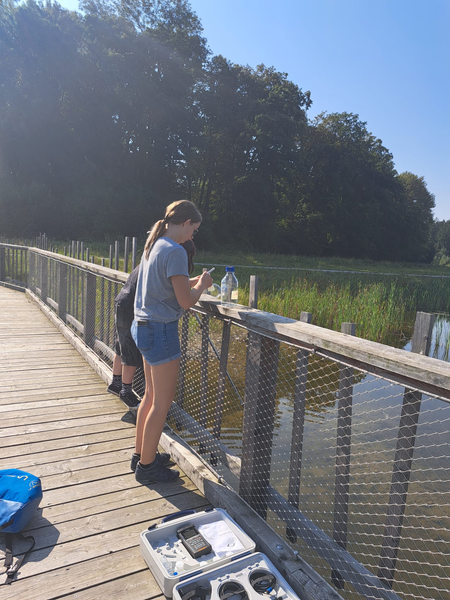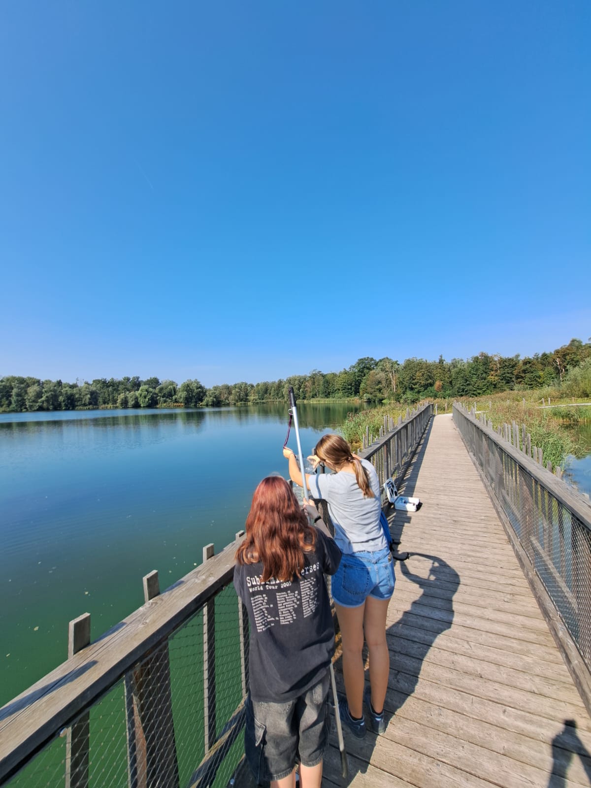 Probenahme in der Weitwörther Au mit unseren Praktikantinnen Zoe (BORG Nontal) und Eleanor (HBW Neumarkt a. W.). Vielleicht finden wir diesmal Aquirufa Bakterien, letzten Sommer hatten wir da nur in der Salzach Erfolg. Auf jeden Fall ist es im Sommer im Renaturierungsgebiet dort wunderschön 😊.