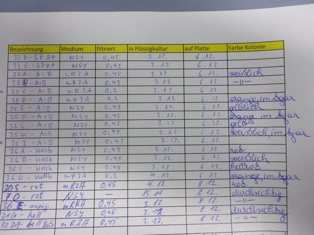 Auf diese Weise wurden über 60 Platten mit Bakterienstämmen angelegt.