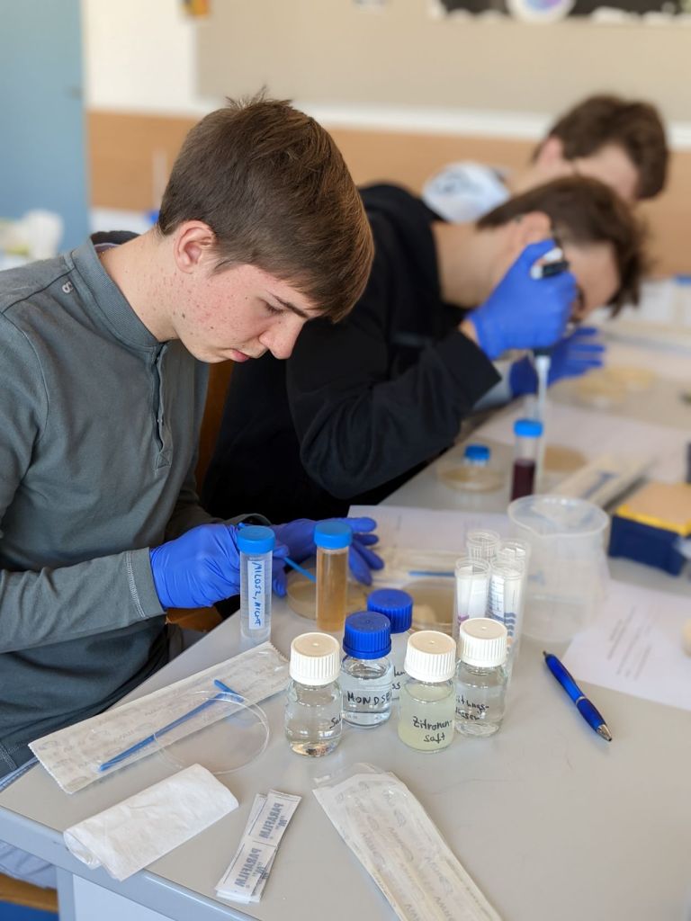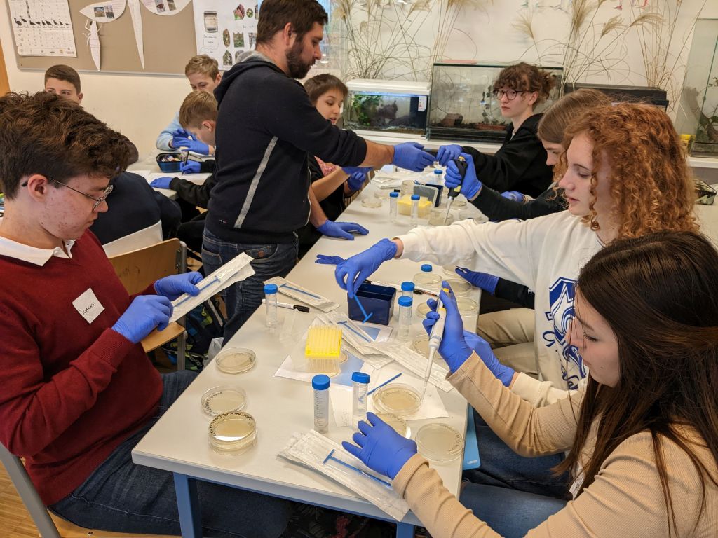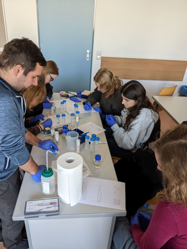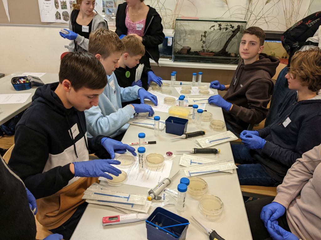 At the 7th of Noveber we (Alexandra, Johanna and Stefan) went to our very first workshop of the new project. Our ‚Instagram representative‘ Sabrina joined us. We visited at the school BORG Nonntal the class 6c. At first we gave an introduction to the project. After that the students spread the samples which they brought from at home on agar plates. The task was to bring a liquid sample with and one without bacteria. The work with automatic pipettes and agar plates went really well. The students measured also pH and conductivity in their own one and other samples. Astonishing was, that Vodka has a very low conductivity. We will see, if some microorganisms like the vodka and grow on these plates. The students also received instructions for choosing and sampling a water habitat. We will work with these samples in the next workshop and hope, that we will get a lot of Aquirufa strains and hopefully new species.