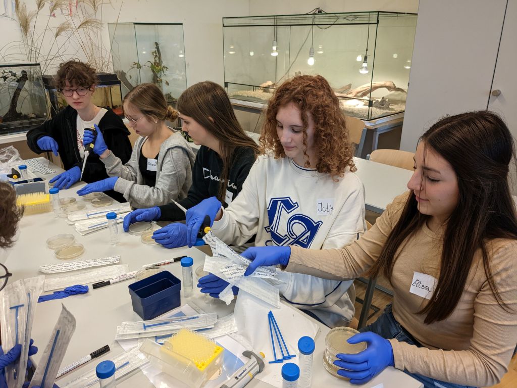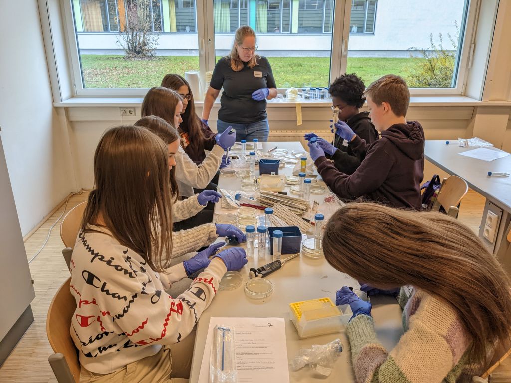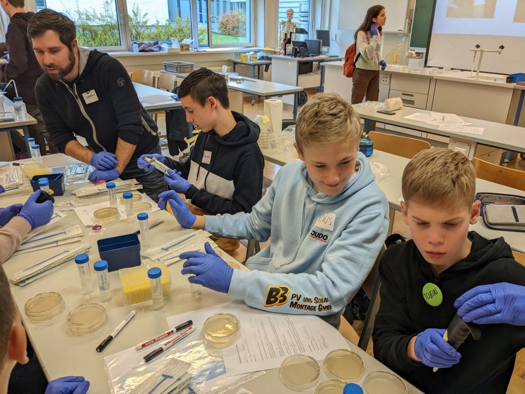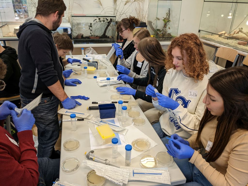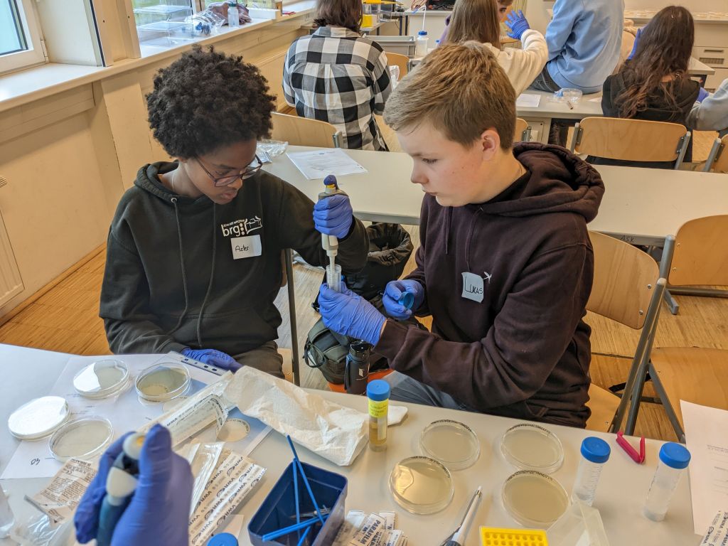At the 7th of Noveber we (Alexandra, Johanna and Stefan) went to our very first workshop of the new project. Our ‚Instagram representative‘ Sabrina joined us. We visited at the school BORG Nonntal the class 6c. At first we gave an introduction to the project. After that the students spread the samples which they brought from at home on agar plates. The task was to bring a liquid sample with and one without bacteria. The work with automatic pipettes and agar plates went really well. The students measured also pH and conductivity in their own one and other samples. Astonishing was, that Vodka has a very low conductivity. We will see, if some microorganisms like the vodka and grow on these plates. The students also received instructions for choosing and sampling a water habitat. We will work with these samples in the next workshop and hope, that we will get a lot of Aquirufa strains and hopefully new species.