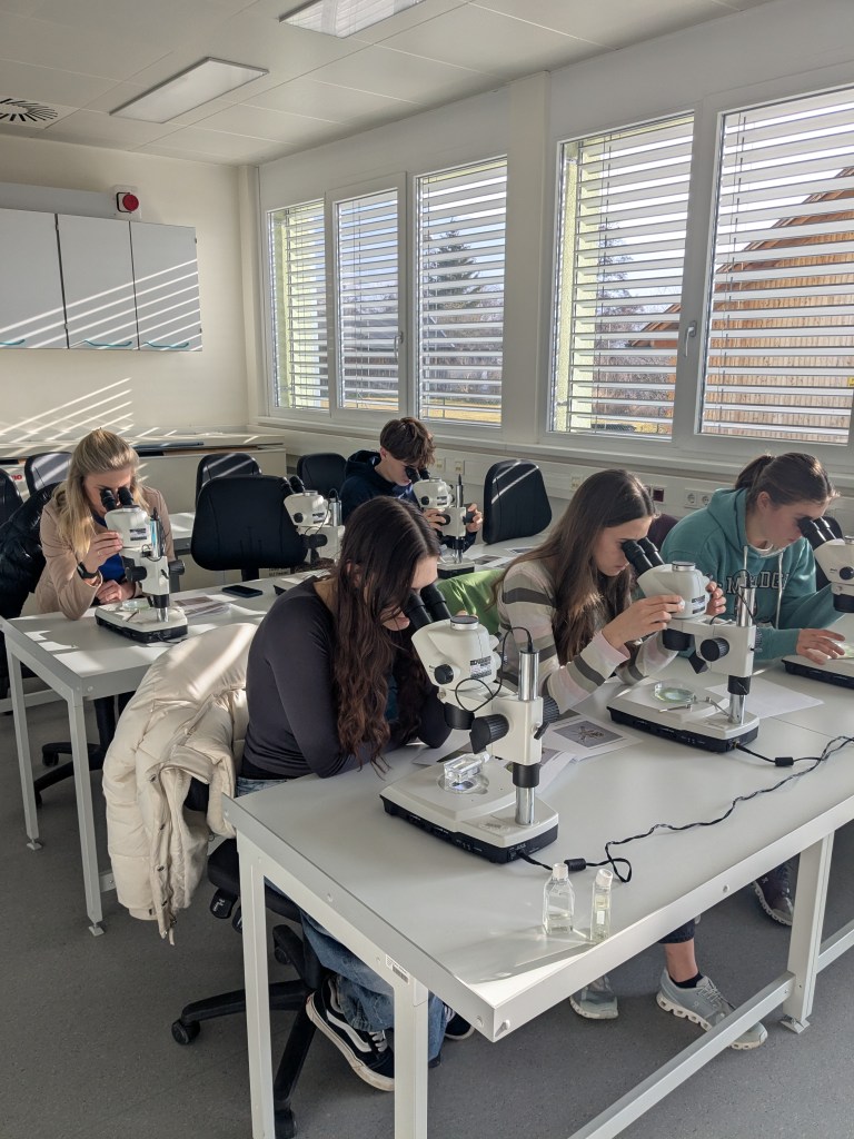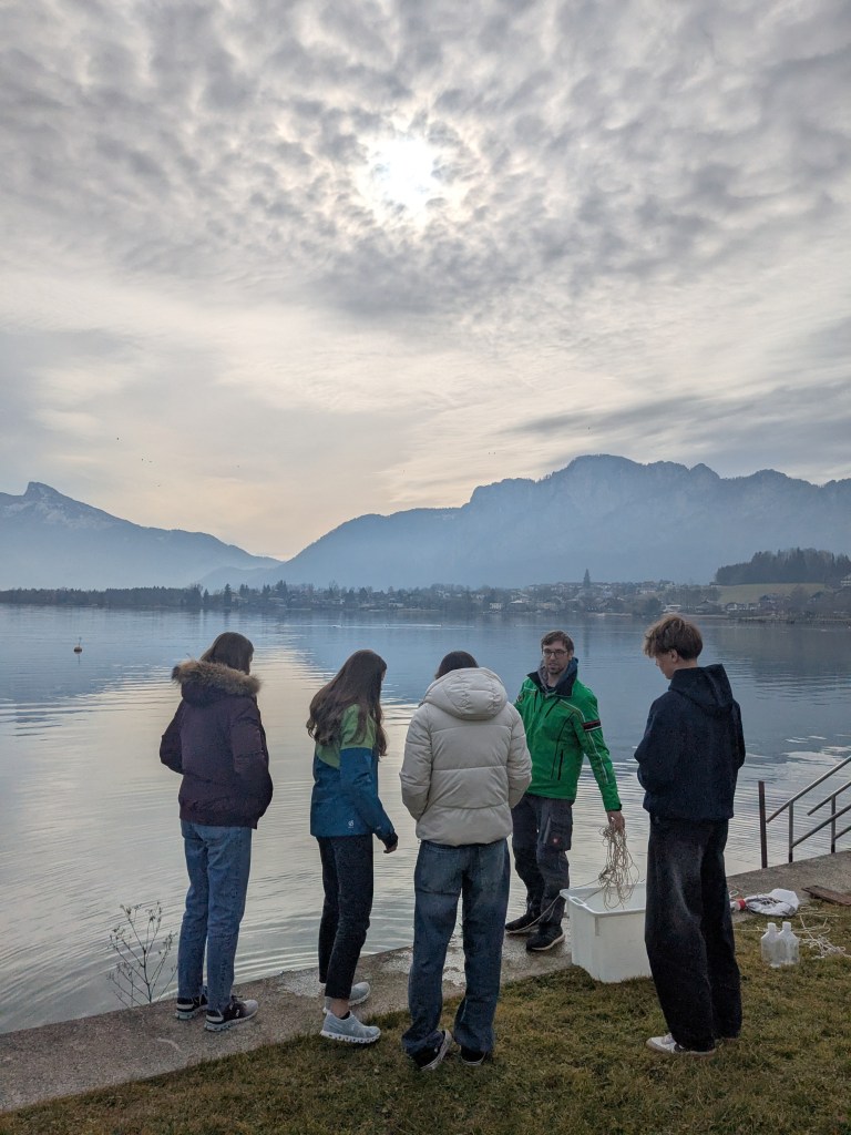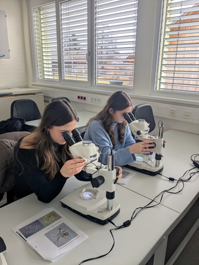 Zum Abschluss hat uns die Klasse mit ihrer Lehrerin Stefanie Steinparzer in Mondsee besucht. Eveline Schürz ist inzwischen Mutter geworden und in Karenz. Zuerst wurden Neuigkeiten ausgetauscht. Wir haben berichtet wie die Mitarbeit der Schüler/innen einen Beitrag zu unserer Forschung geleistet hat. Die Klasse hat von ihrer Artnamensuche mit ihrer Latein-Lehrerin Birgit Grübl erzählt. Die geplanten Namen für unsere korsische Bakterienarten hören sich sehr spannend an 🙂. Dann wurde das Institut und unser Labor erkundet, Wasserproben am Mondsee genommen und das Plankton im Mikroskop angeschaut. Die Partybrezeln 🥨 kamen nach anfänglichen Problemen doch noch und so konnten wir den Vormittag mit einer gemeinsamen Jause abschließen. Wir danken allen recht ❤️lich fürs Mitmachen im Projekt und wünschen alles Gute für die Matura 🍀.