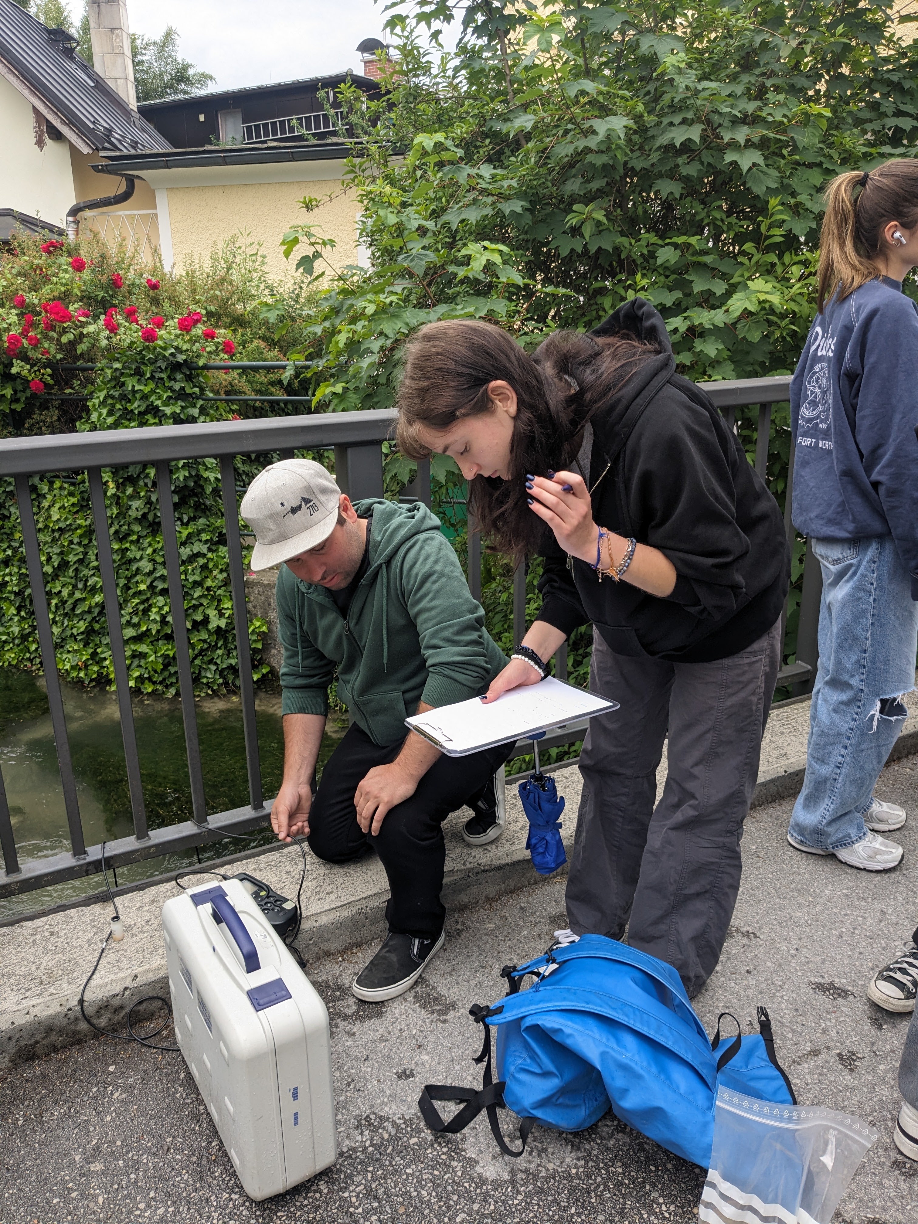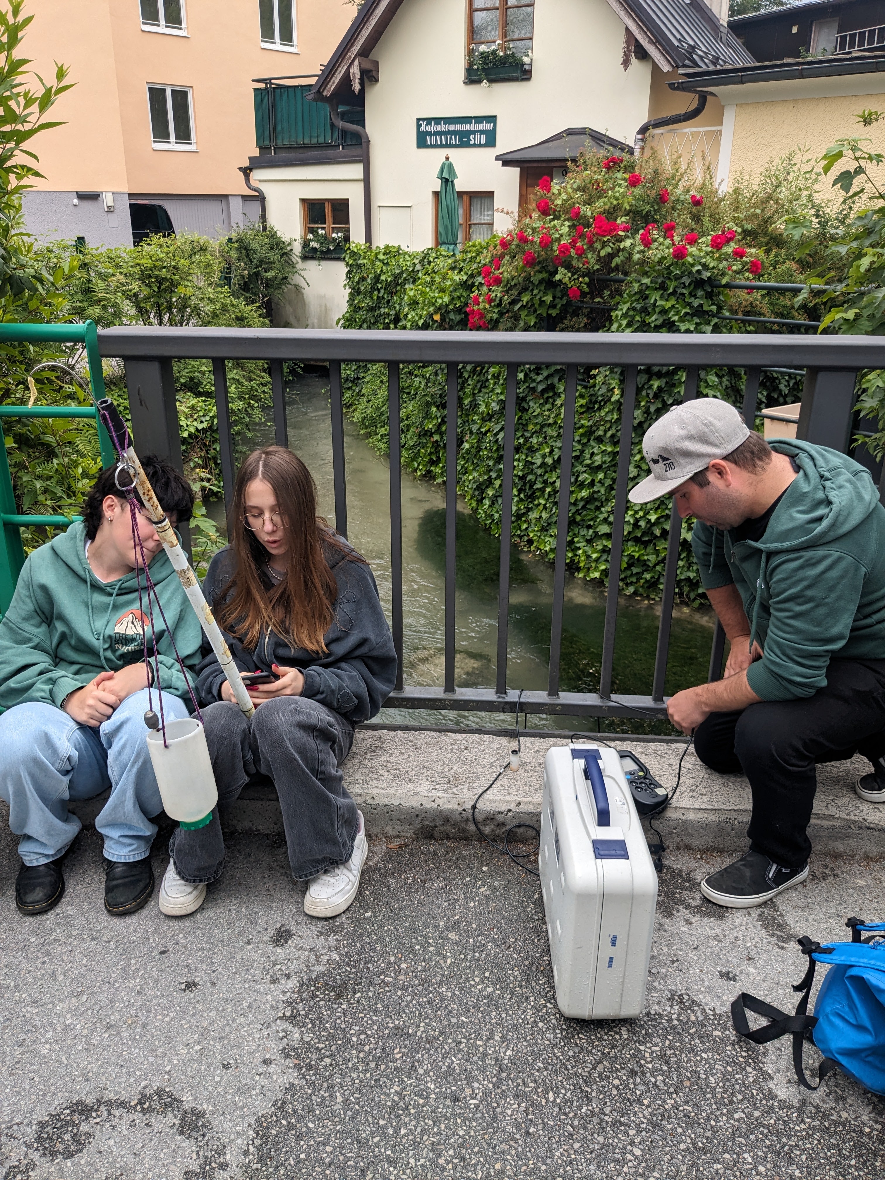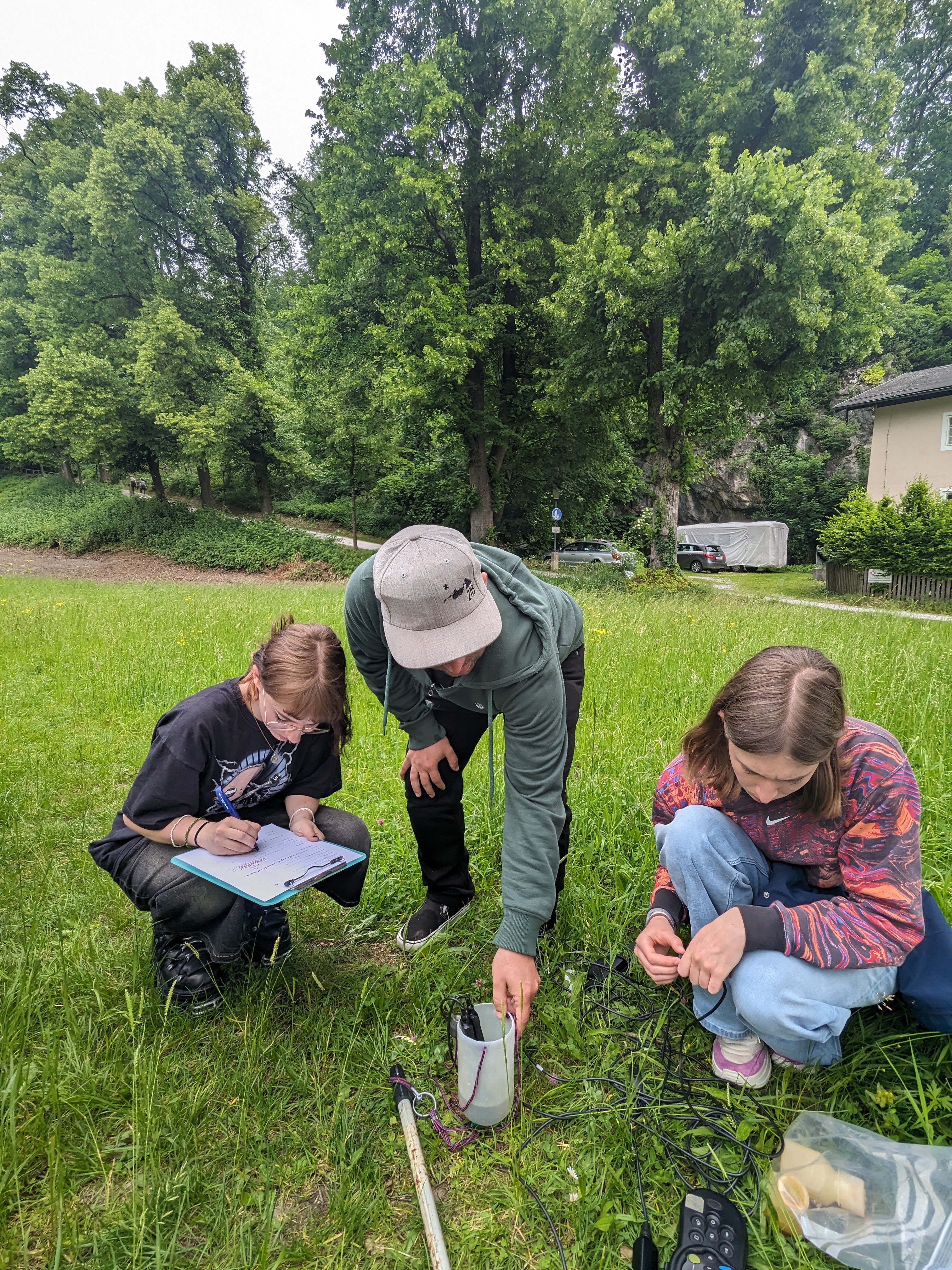 Unser letzter Besuch in diesem Schuljahr galt der 7. Klasse des naturwissenschaftlichen Zweiges des BORG Nonntals mit ihrem Lehrer Markus Herbst. Ziel war es Wasserproben für den zweiten Teil unseres Projektes zu sammeln. Daraus wollen wir später die DNA analysieren, um zu erfahren wie viele Aquirufa Arten es in unseren Gewässern nun wirklich gibt und welche Arten wo vorkommen. Stefan hatte schon 2 L Wasser aus dem Heimatgewässer von Aquirufa regiilacus, dem Leopoldskroner Weiher, geholt. Mit der Klasse machten wir uns noch zum Hellbrunner Bach und zum Almkamal auf. Mit unserem Teleskop Wasserschöpfer wurden Wasserproben genommen und Messungen durchgeführt. Besonderen Spaß machte das Messen der Fließgeschwindigkeit mit einem fluoreszierenden Tracer. Jetzt wünschen wir der Klasse einen schönen Sommer und freuen uns auf den Besuch bei uns im Forschungsinstitut im Herbst 😊.