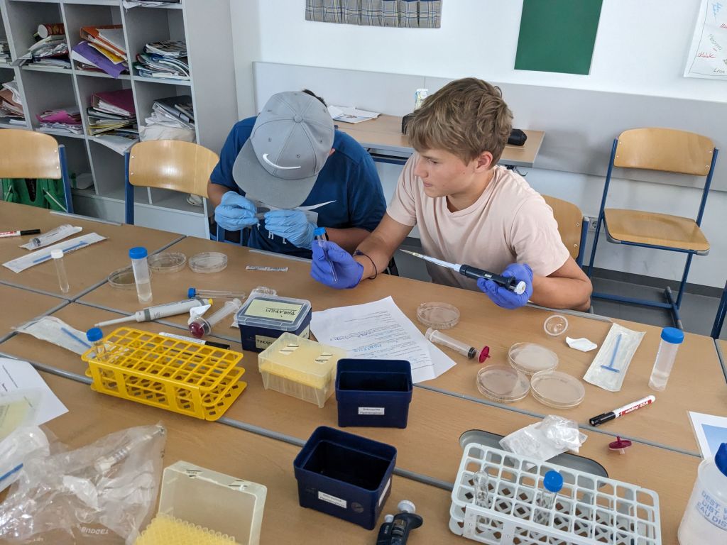 Die Klasse hat sich an der Art Namensgebung versucht. Da der als Art zu beschreibende Bakterienstamm aus dem Pladenbach in Eching stammt, haben sie sich für Aquirufa echingensis entschieden. Ein sehr schöner Name und laut unserem Kooperationspartner und Experten Aharon Oren (Mikrobiologe in Jerusalem) auch grammatikalisch korrekt. Jetzt wartet auf uns viel Arbeit beim Verfassen der Publikationen, aber das macht auch Spaß. Wir freuen uns auf ein Wiedersehen im Herbst 😊.