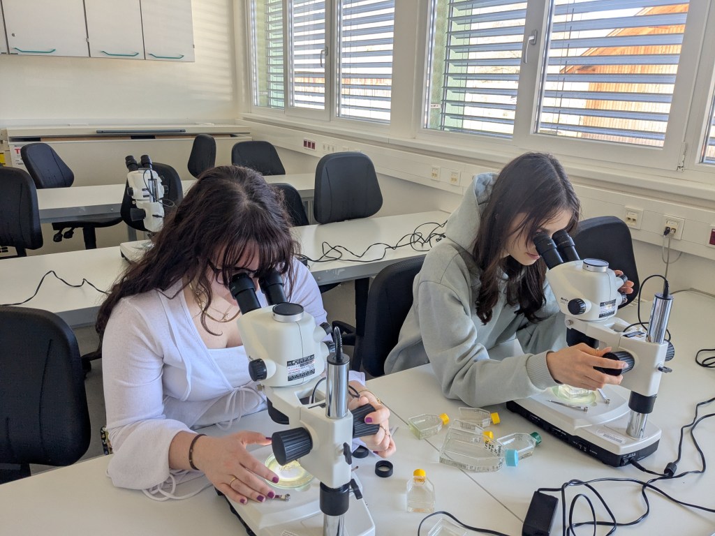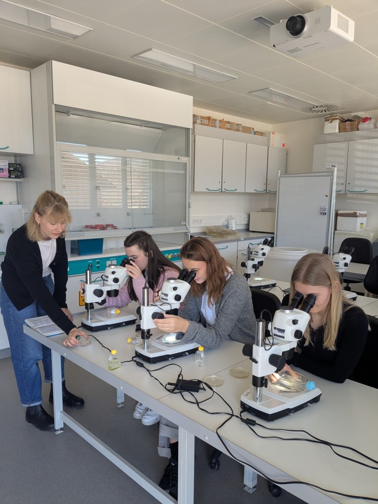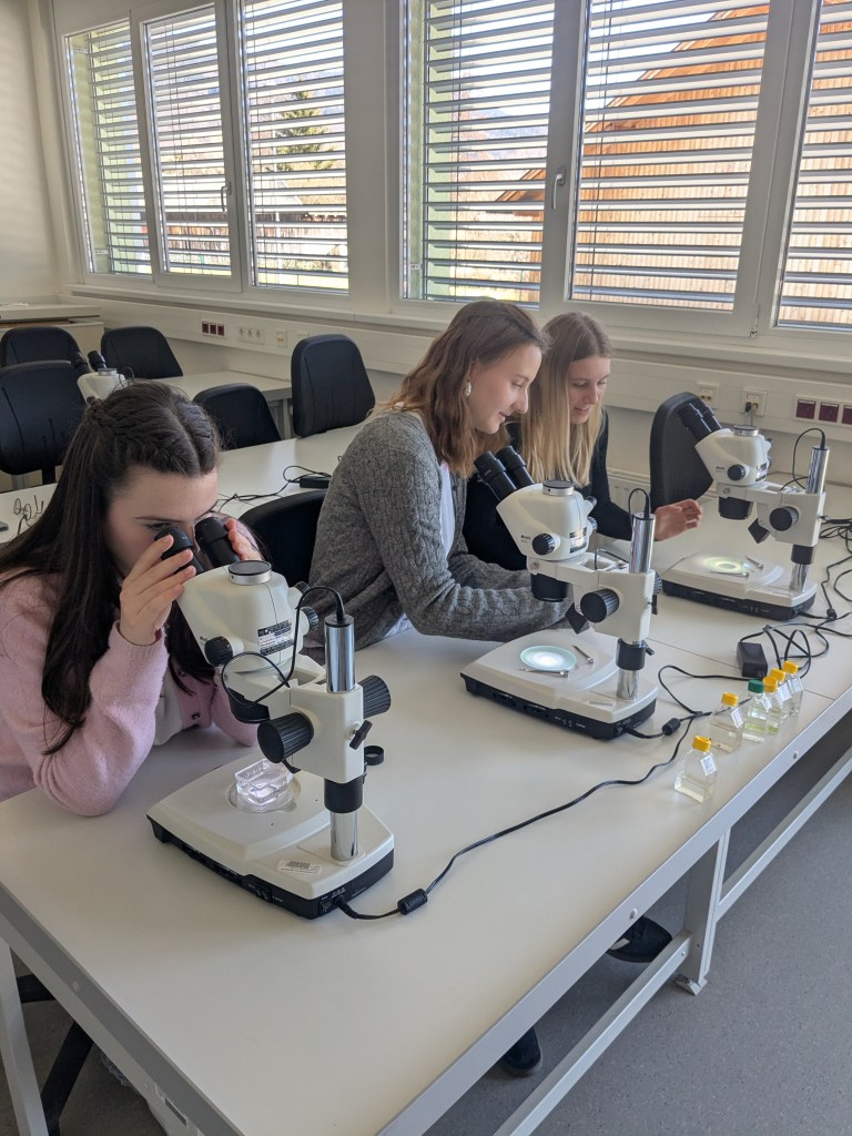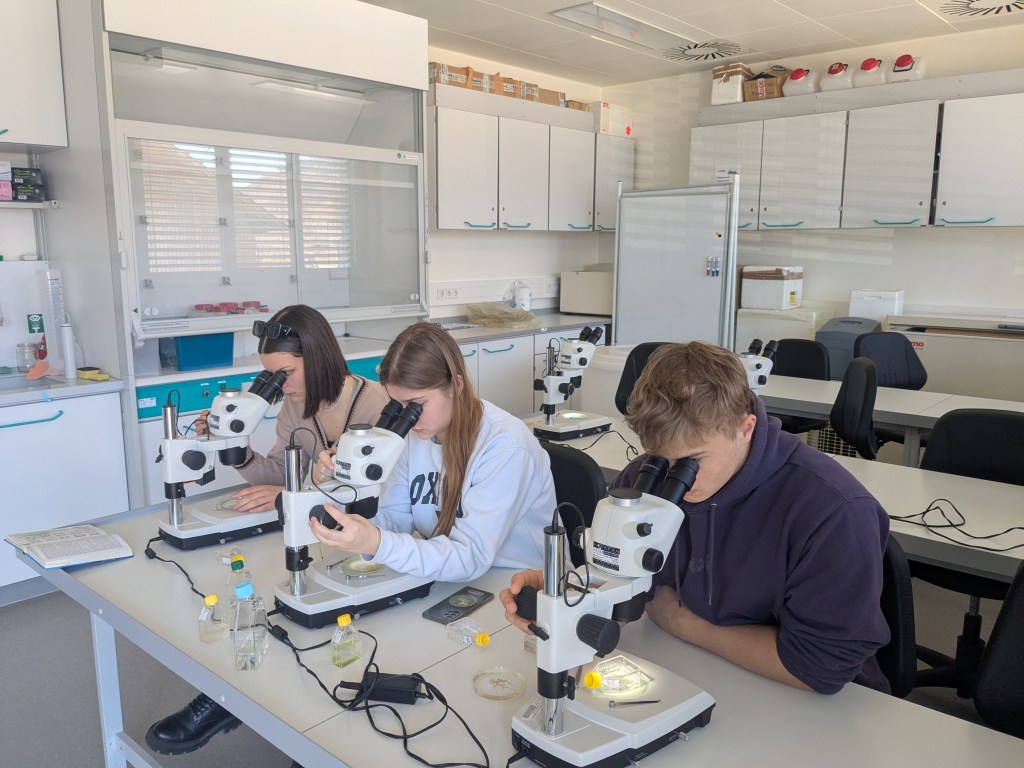 Im März 2025 war die Klasse bei uns zu Besuch im Forschungsinstitut in Mondsee. Inzwischen sind die Schüler/innen in der 7. Klassenstufe. Wir liesen die Mitarbeit der Klasse noch einmal Revue passieren, wir hatte ja aus ihren Wasserproben eine ganze Reihe an Aquirufa Kulturen gewinnen können, auch eine neu entdeckte Art war dabei. An verschiedenen Stationen wurde das Institut erkundet. Mit dem Plaktonnetz wurde aus dem Mondsee eine Probe geholt und unter dem Mikroskop angeschaut. Wir wollten zeigen, dass im Mondsee nicht nur Bakterien leben ;-). Im Labor wurde mit Aquirufa Kulturen auf Agarplatten gemalt, die tollen Ergebnisse kann man unten betrachten. Zum Schluss gab es noch eine Jause und die Klasse schloss ihren Besuch mit einem Spaziergang zur Seepromenade ab. Wir bedanken uns ganz herzlich für die Mitarbeit und halten die Klasse über weitere Forschungsergebnisse auf dem Laufenden.
