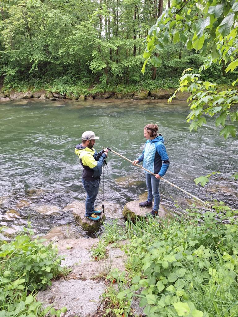 Zur Frühjahrsprobenahme waren wir mit der 6b vom BRG Schloß Wagrain am Zusammenfluss von Vöckla und Ager. Im zweiten Teil des Projektes wollen wir direkt aus Wasserproben mit einem molekularen Marker die Artenvielfalt und Verbreitung unserer Aquirufa Bakterien erforschen. Dafür waren die Bakterien Kulturen, die wir mit Hilfe der Schüler/innen gewonnen hatten, eine wichtige Vorarbeit. Mit Hilfe unseres ‚hochwissenschaftlichen‘ Probenehmers wurde Wasser entnommen und verschiedene Parameter gemessen. Eine Schülergruppe engagierte sich sehr eine Strecke für die Bestimmung der Fließgeschwindigkeit auszumessen. Mit Hilfe eines Tracers und der guten Physik- und Mathe Kenntnisse von einigen Schülerinnen könnten wir diese dann auch berechnen. Ganz ❤️lichen Dank an die Klasse und ihren Lehrer Roman Auer. Wir freuen uns auf euren Besuch im nächsten Schuljahr 😊.