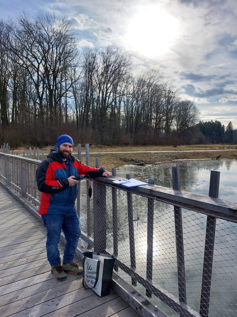 Damit wir auch Wasserproben aus der Weitwörther Au aus dem Winter in unsere Untersuchungen einbeziehen können, haben sich Johanna und Stefan im Februar auf den Weg dorthin gemacht. Sie hatten Glück und es war ein herrlicher Tag mit Sonnenschein.