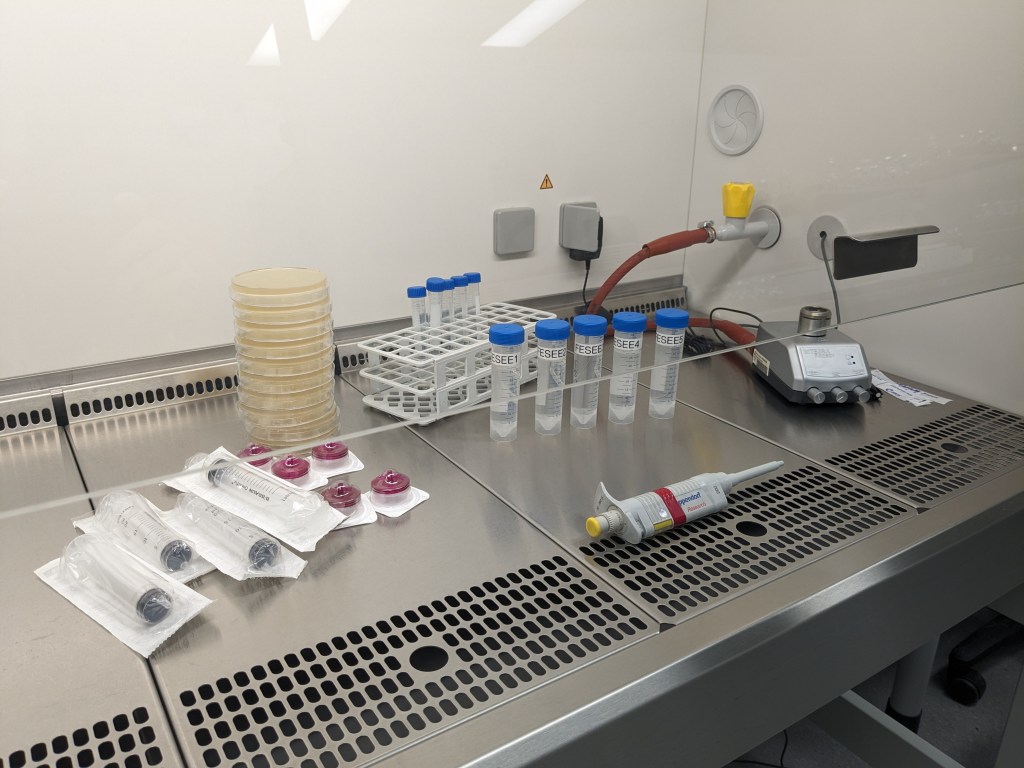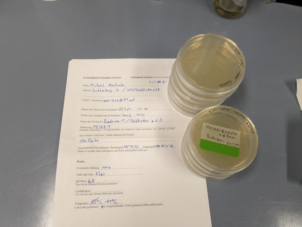 Von Maik Westreicher haben wir Proben aus Feldkirchen an der Donau von den Teichen dort bekommen. Ausserdem haben wir noch eine Wasserprobe aus dem ‚Kessel‘, einer Höhle am Hallstätter See von einem Tauchgang mit Lukas Moravec erhalten. Damit werden wir nochmal versuchen Bakterienkulturen von unserer gesuchten Gattung Aquirufa zu bekommen.